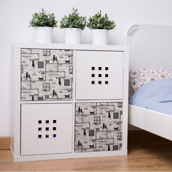 ぷっくりとした立体感がポイントです。ネコとブルックリン風のデザインが可愛らしく癒されます。シートはカット可能なので家具や雑貨のデコレーションにもぴったりです。