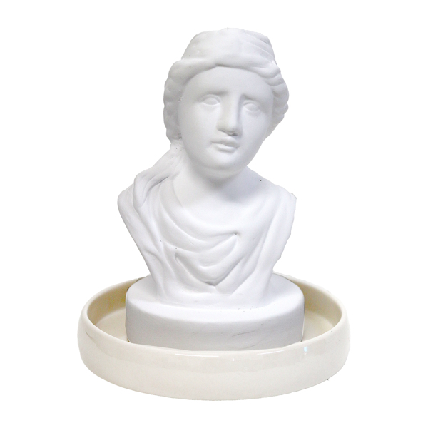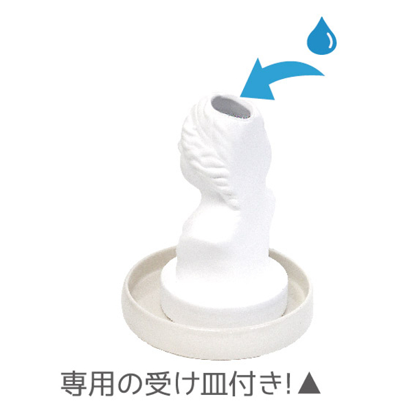 美術館で見たことありそうな石膏像がデザインされた加湿器です。本体上部の穴からお水を入れることができます。専用の受け皿付きで、壁際に置いても壁や床に結露の心配がありません。