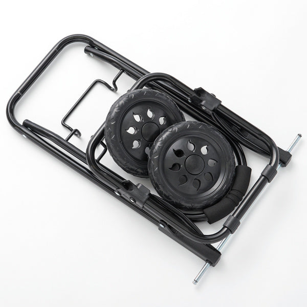 本体フレームからバッグを取り外し、折りたたむことができます。タイヤも外すことができ、コンパクト収納が可能です。スペースを取らずに収納しておけるので、車に積んでおくと使いたいときにサッと出すことができて便利です。