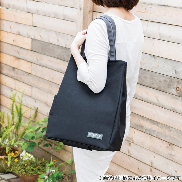 容量22Lでコンパクトかつ容量たっぷりのトートバッグは、口を紐で絞って閉めるタイプなので、開口部が広くて物の出し入れがしやすいです。たくさんお買い物をしても、巾着部分が大きいのでしっかり収納できます。また、内側にはメッシュポケットが付いており、保冷剤やちょっとした小物を入れておくことができます。