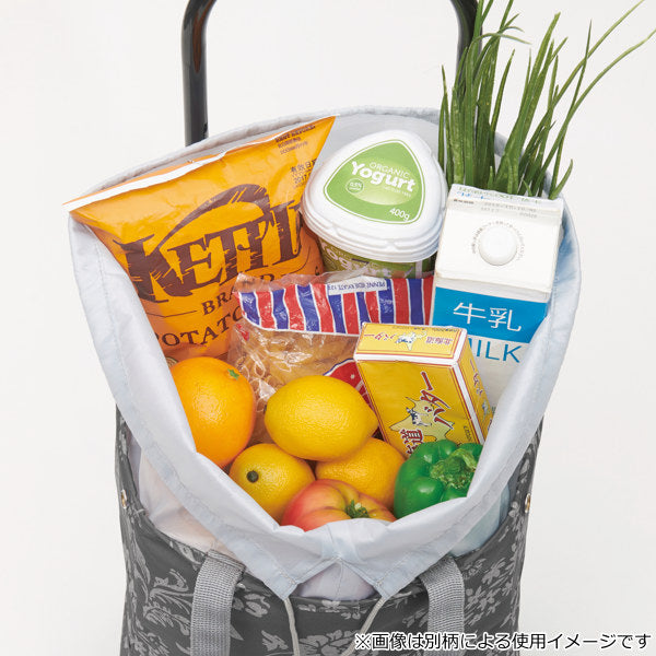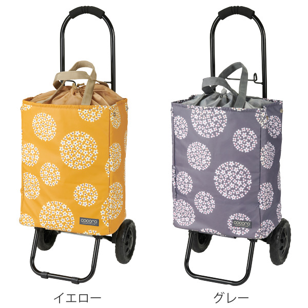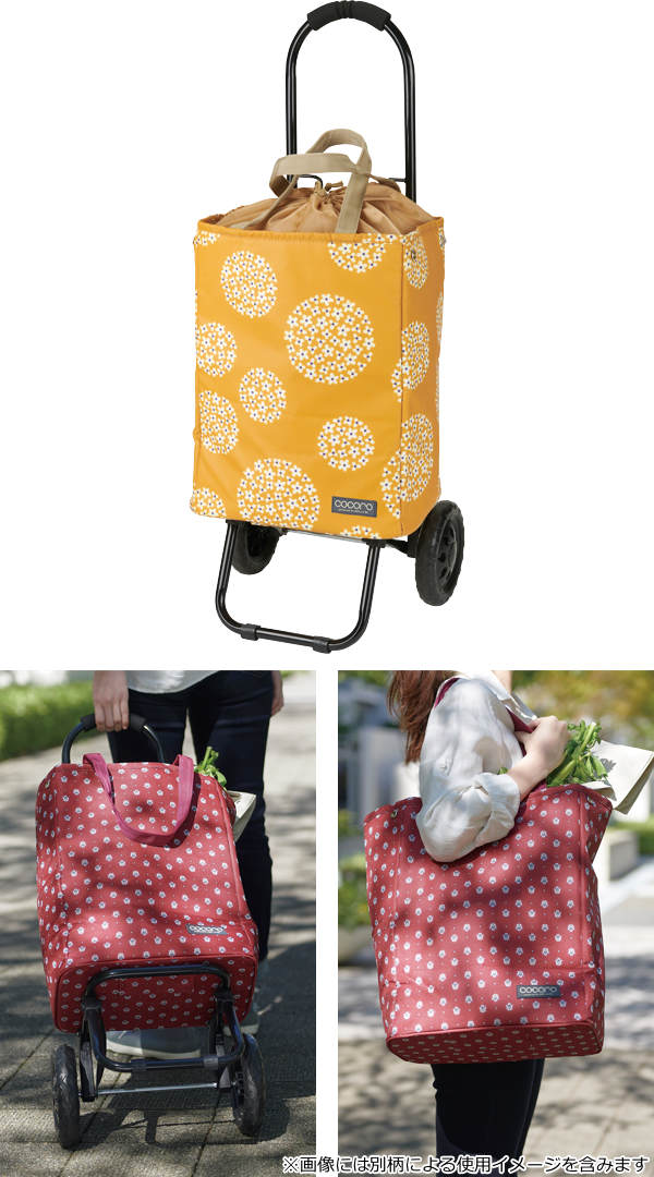 カートでのお出かけをよりカジュアルにしてくれる、取り外してショルダーバッグとしても使えるトートバッグ型のカートです。重い荷物はカート、身軽に動きたい時はフレームを外してトートバッグでと臨機応変に使い分けができます。花をモチーフにした北欧風のデザインと、やや落ち着いた色合いでコーディネートに程よいアクセントを加えてくれます。