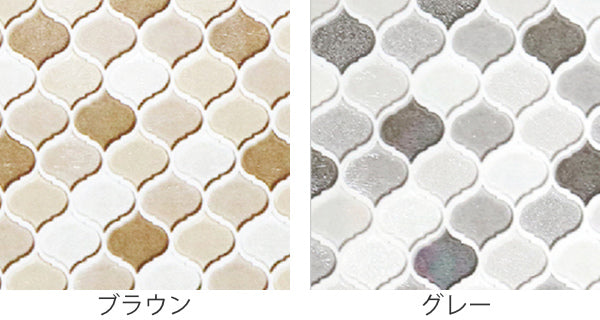 光に当たるとキラキラ反射します。モロッコタイル柄でオシャレな空間を演出します。色もブラウンとグレーで、どんな場所にも馴染みやすい色合いです。