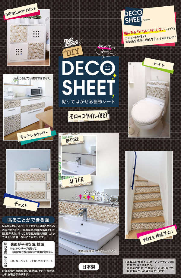 デコタイルシール モロッコタイル 40cm×100cm 貼ってはがせる リメイクシート