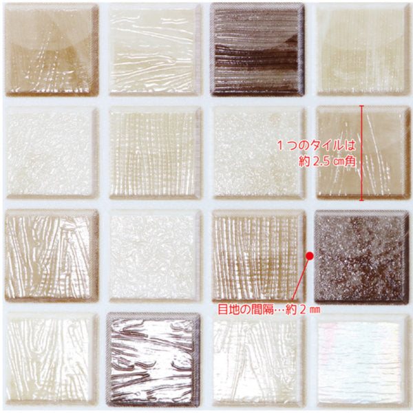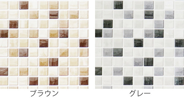 光に当たるとキラキラ反射します。 ガラスタイル柄でオシャレな空間を演出します。 色もブラウンとグレーで、どんな場所にも馴染みやすい色合いです。