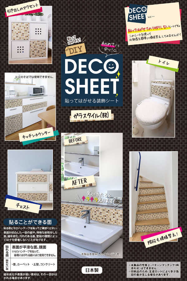 デコタイルシール ガラスタイル 40cm×100cm 貼ってはがせる リメイクシート