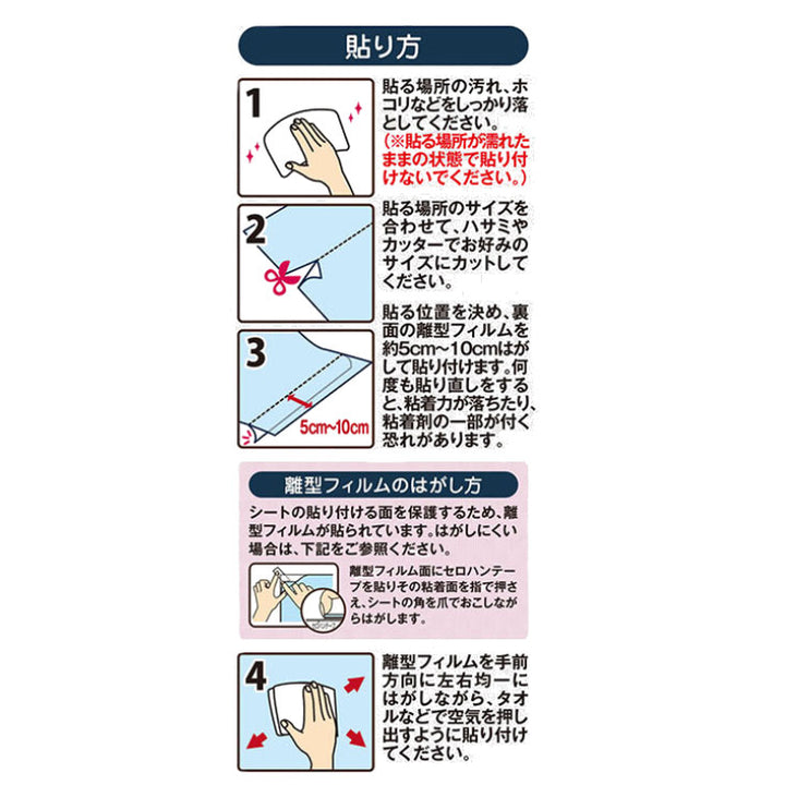 賃貸住宅でも安心な貼って剥がせるタイプの装飾シートです。 洗面所やキッチンなどお好きな場所を模様替えできます。
