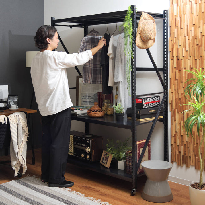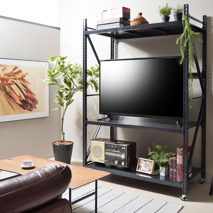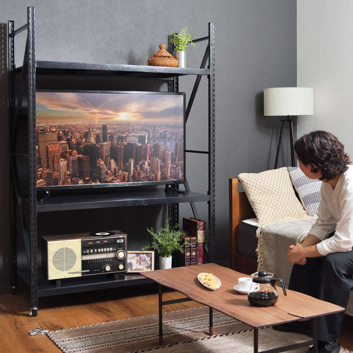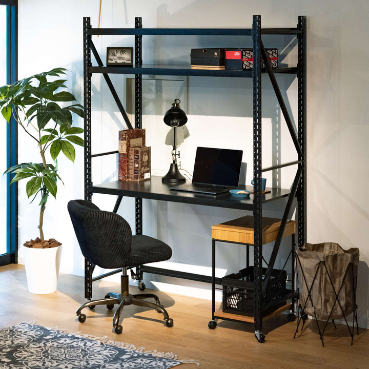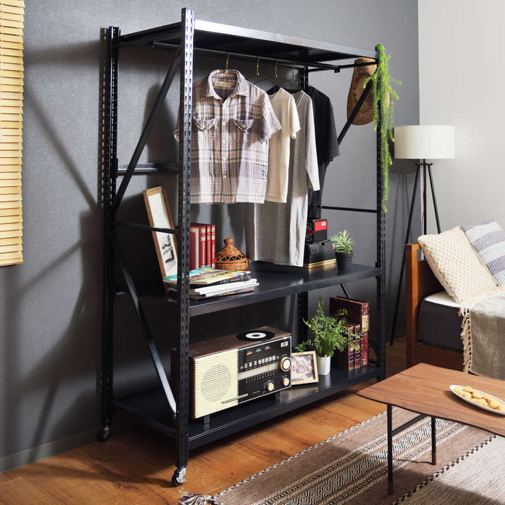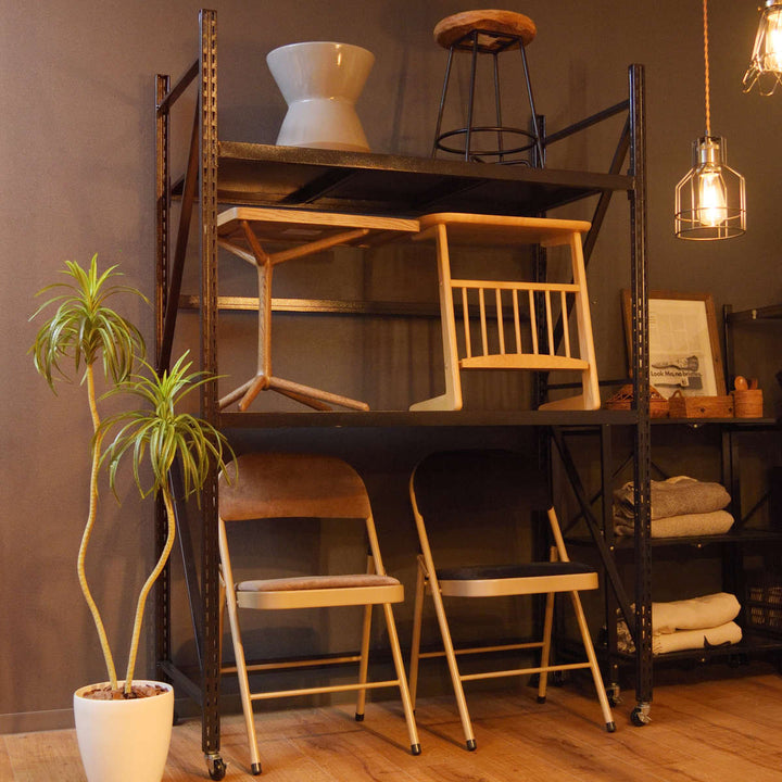 ●ミリタリーの無骨さを取り入れたラックは、お部屋に置けばクールな印象に早変わりします。