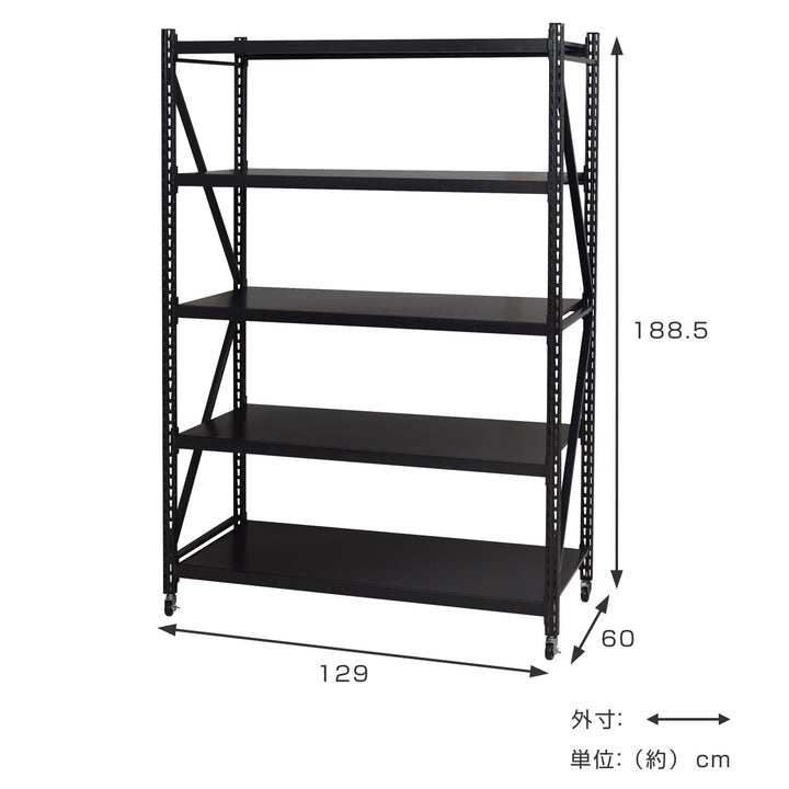 スチールラック 4段 深型 キャスター付 ボルトレス RALD 幅129cm