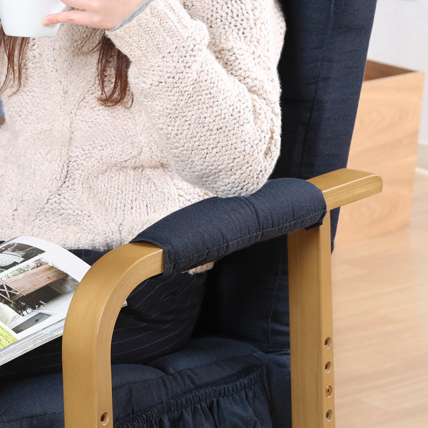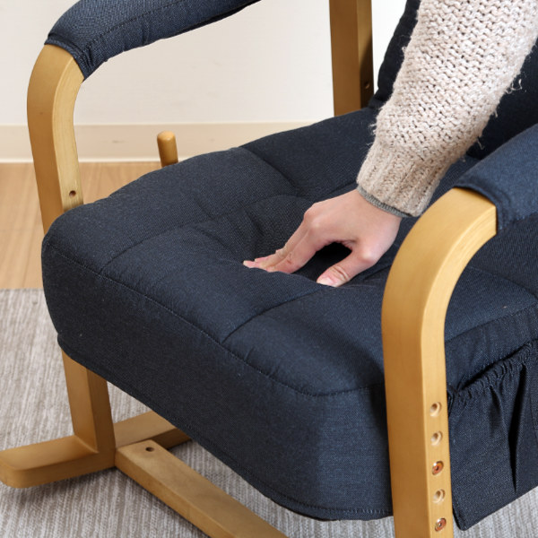 ハイバックの背もたれはお昼寝にもピッタリで、ゆりかごに揺られているような心地良さで優しく体を包んでくれます。天然木を使用したフレームと落ち着いたカラーの生地はお部屋に馴染みやすく、和室でも洋室でもお使いいただけます。