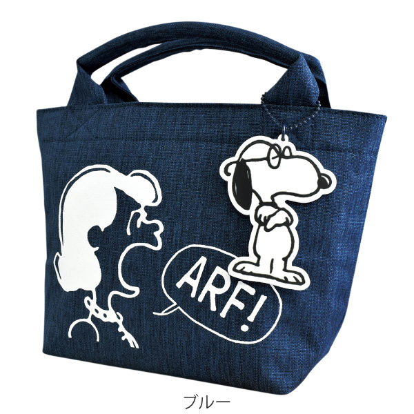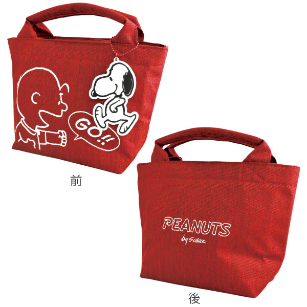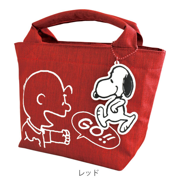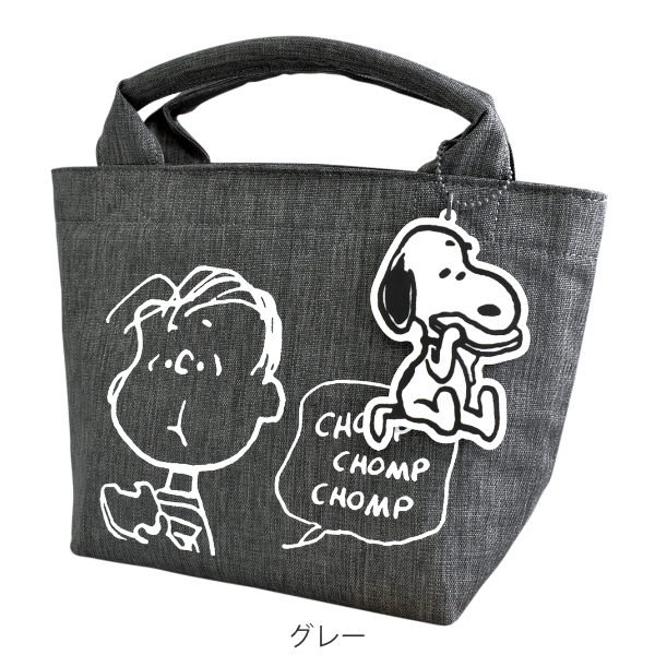 保温保冷効果のあるスヌーピーのチャーム付きランチバッグです。マチは12cmあり、ランチグッズをまとめて入れたり、ちょっとしたお出かけにも便利なサイズです。