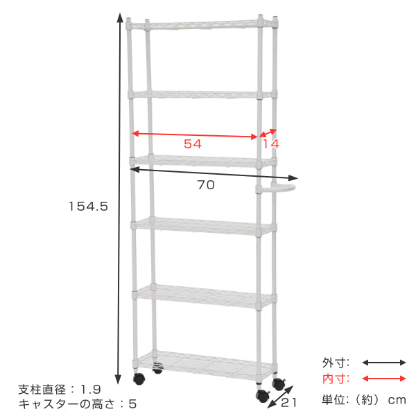 スチールワゴン 6段 ハイタイプ スリム ホワイト 幅60cm