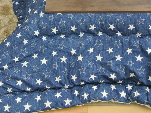 デニム生地に星が散りばめられたポップなデザインで、お部屋の雰囲気が明るくなります。