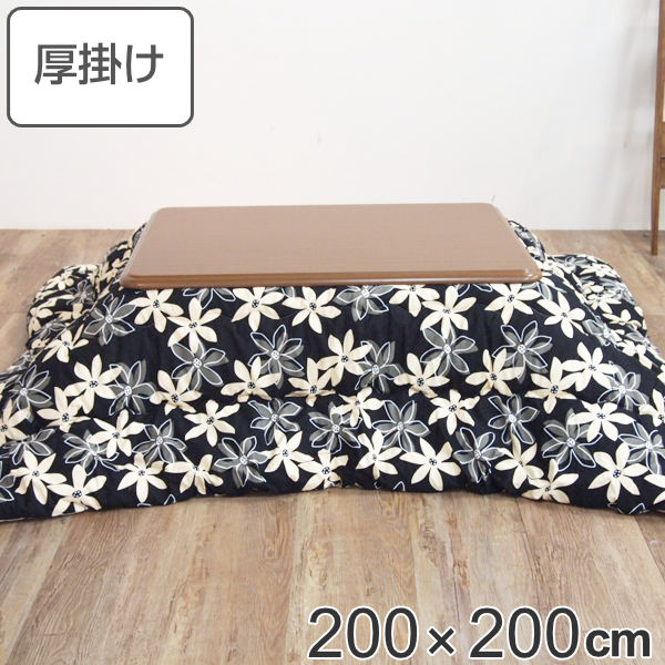 200×200cmの正方形タイプのこたつ布団です。表生地と裏生地は綿100%仕様です。とても肌触りが良く、冬場に困りがちな静電気が発生しにくいため快適にお過ごしいただけます。