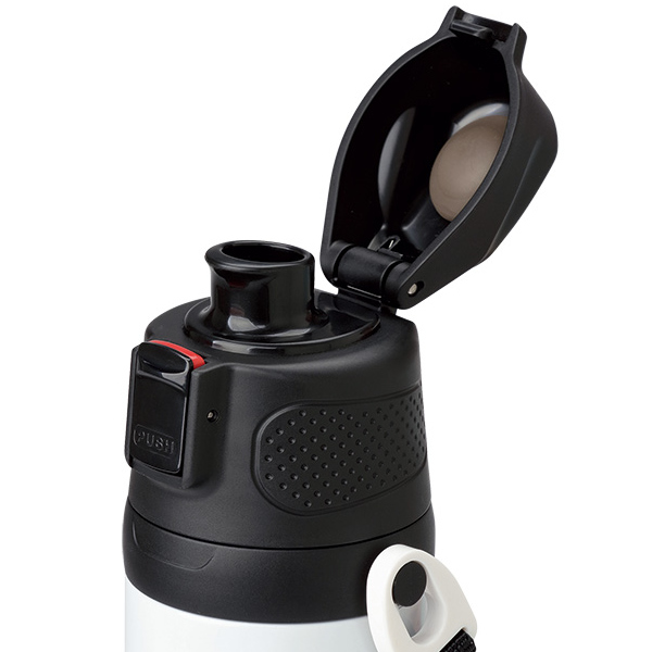 水筒の蓋はボタンを押すだけで開けることができるワンタッチ式です。小さなお子様でも簡単に開けられます。