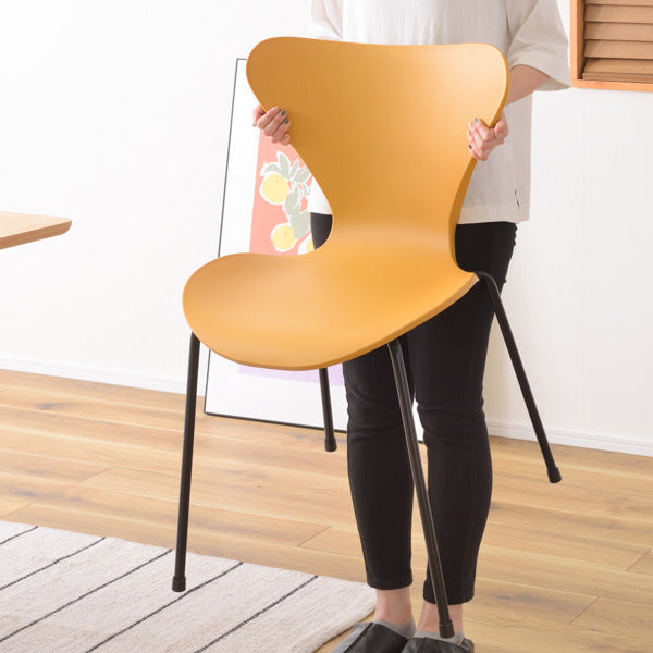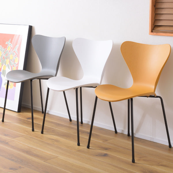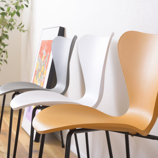 座面は背もたれにかけて傾斜があり、深く座りやすくなっています。背もたれのくびれのようなデザインはやわらかく可愛さもあります。体を包み込むようなゆるやかなカーブがポイントです。インテリアのワンポイントにピッタリなカラー展開なので、1脚ずつカラーを変えて遊び心を加えてみてはいかがでしょうか。
