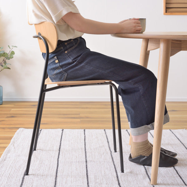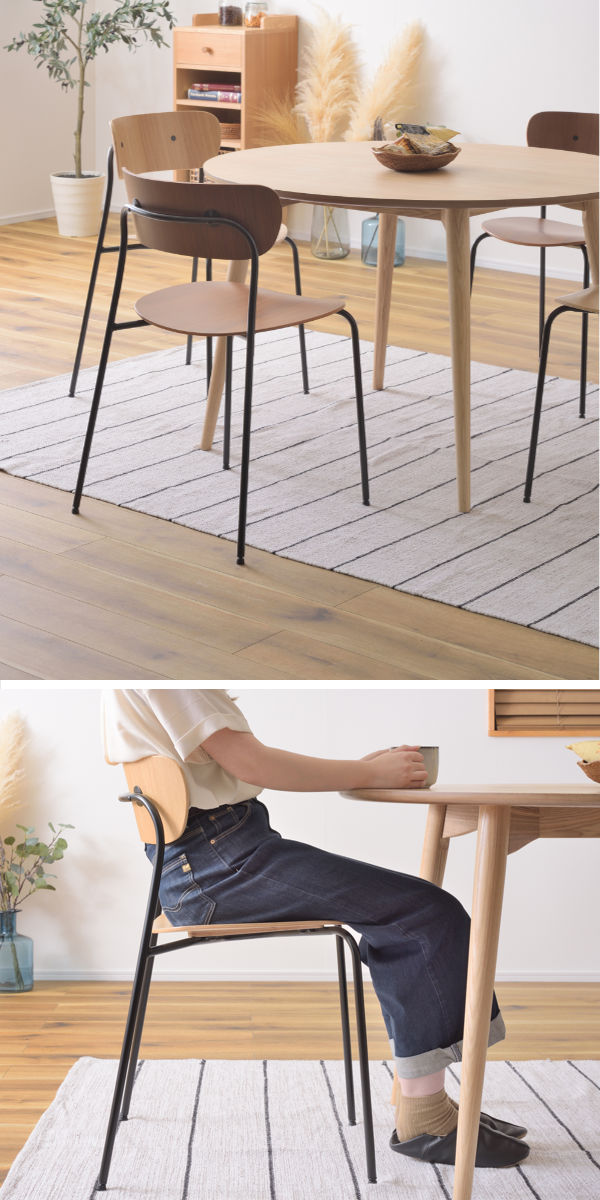 シンプルながらも洗練されたデザインが特徴です。細めのラインが美しく、背もたれはアーチを描いているので体にフィットします。どんなお部屋にも溶け込みやすく、お持ちの家具やインテリアに合わせやすいチェアです。無駄を省いたシンプルなデザインで、空間を広々と見せることができます。