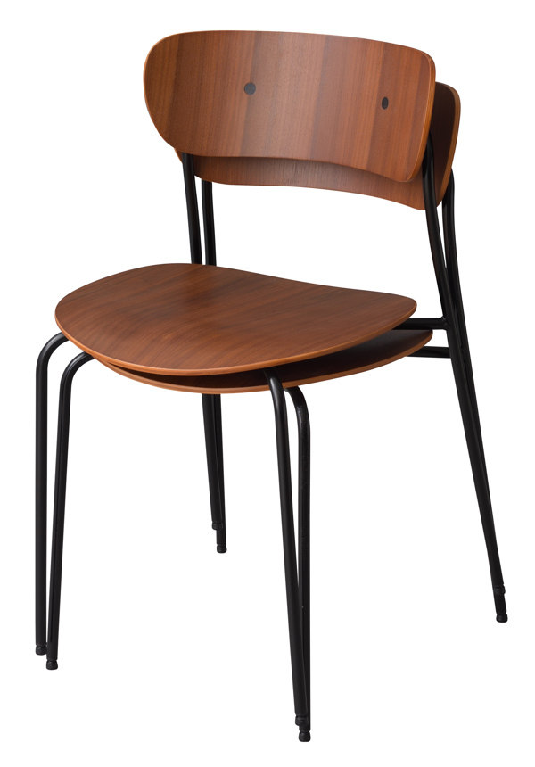 重ねて収納できるので場所を取らずにすっきりとまとめることができます。来客用のサブチェアとしてまとめて収納しておけます。