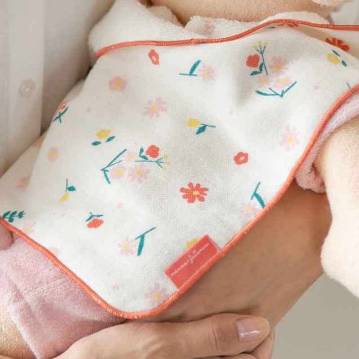 ハンドタオルを1枚持っていれば、離乳食時のお食事エプロンとして急なお食事にも便利です。ハンカチとしても使えて様々なシーンで活躍します。