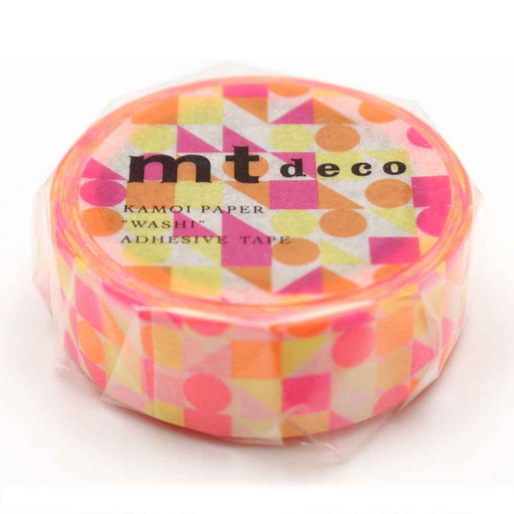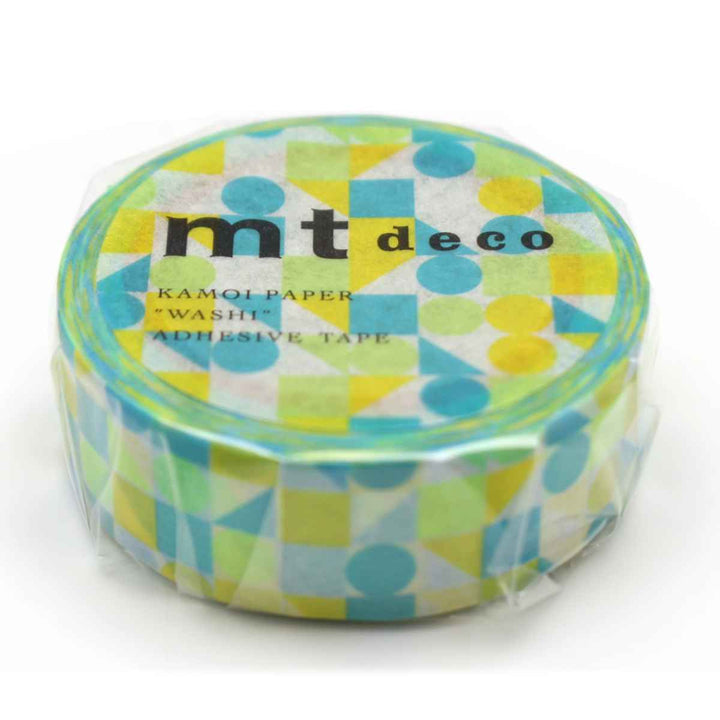 ●ポップな色使いに個性的なデザインのまるさんかくしかく柄です。