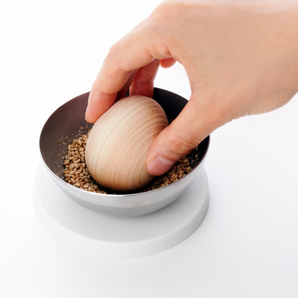 ステンレス製のすり鉢なので、味や香りが移りにくく、胡麻はもちろん、ナッツや粒こしょう、茶葉のすりつぶし、ニオイの強いスパイスなど幅広く使っていただけます。