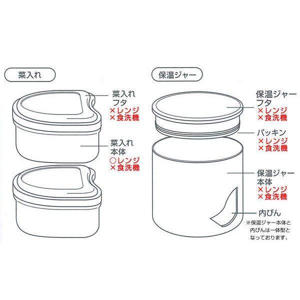 | 内容量 | 1個 (保温ジャー、菜入れ×2個、ランチバッグ、フォーク&ケース) |