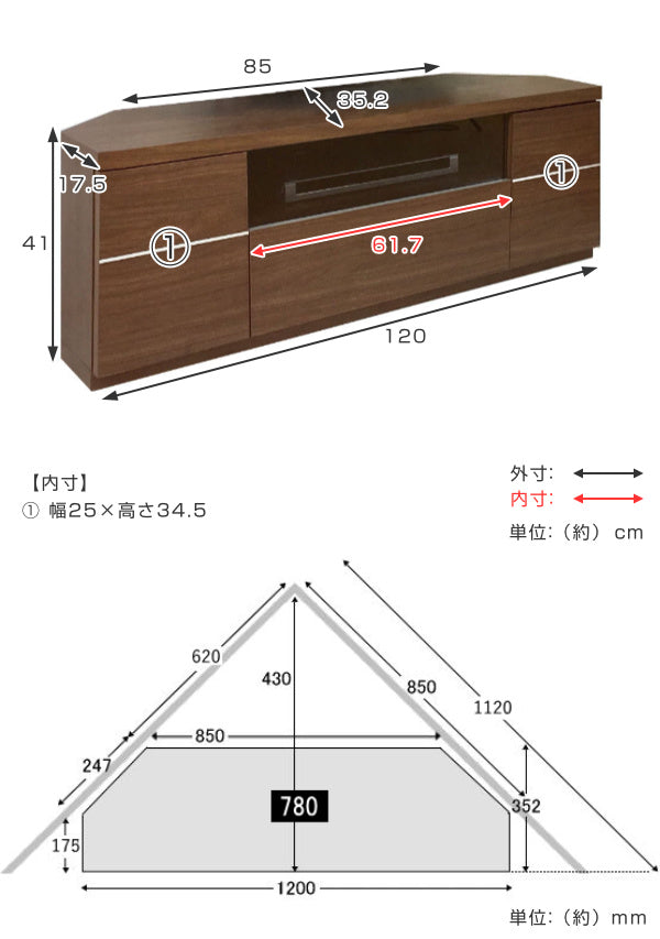 | サイズ | 約 幅120×奥行35×高さ41(cm) |