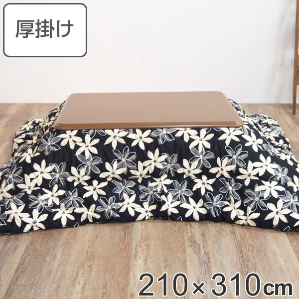 210×310cmの長方形タイプのこたつ布団です。表生地と裏生地は綿100%仕様です。とても肌触りが良く、冬場に困りがちな静電気が発生しにくいため快適にお過ごしいただけます。
