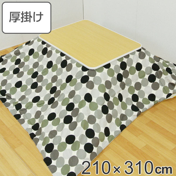 210×310cmの長方形タイプのこたつ布団です。表生地と裏生地は綿100%仕様です。とても肌触りが良く、冬場に困りがちな静電気が発生しにくいため快適にお過ごしいただけます。