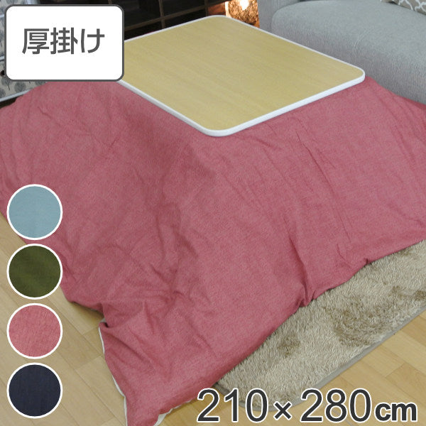 210×280cmの長方形タイプのこたつ布団です。表生地と裏生地は綿100%仕様です。とても肌触りが良く、冬場に困りがちな静電気が発生しにくいため快適にお過ごしいただけます。