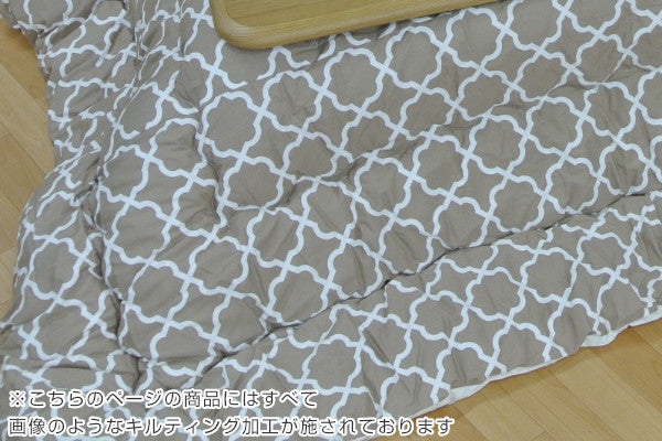 表と裏を縫い合わせて膨らみをもたせるキルティング加工を施したこたつ布団です。中綿の偏りを防ぐだけでなく、暖気を逃さずふっくらあったかい仕上がりになっています。