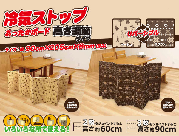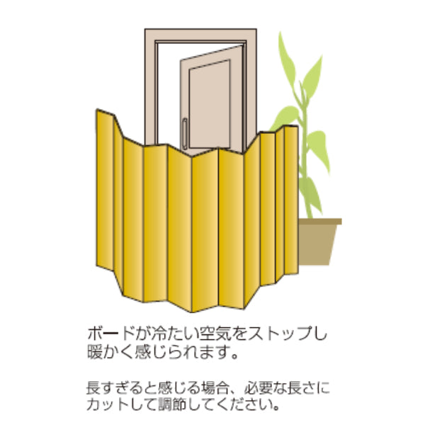 隙間風を感じる場所や冷たい空気が入るドアや窓の前にボードを広げて設置することによって、冷たい空気を遮断し温もりを閉じ込めます。
