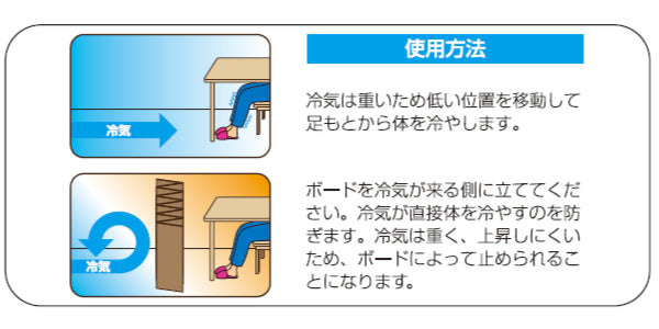 ●ボードを広げて置くだけの簡単設置で、足元からの冷気を遮断します。
