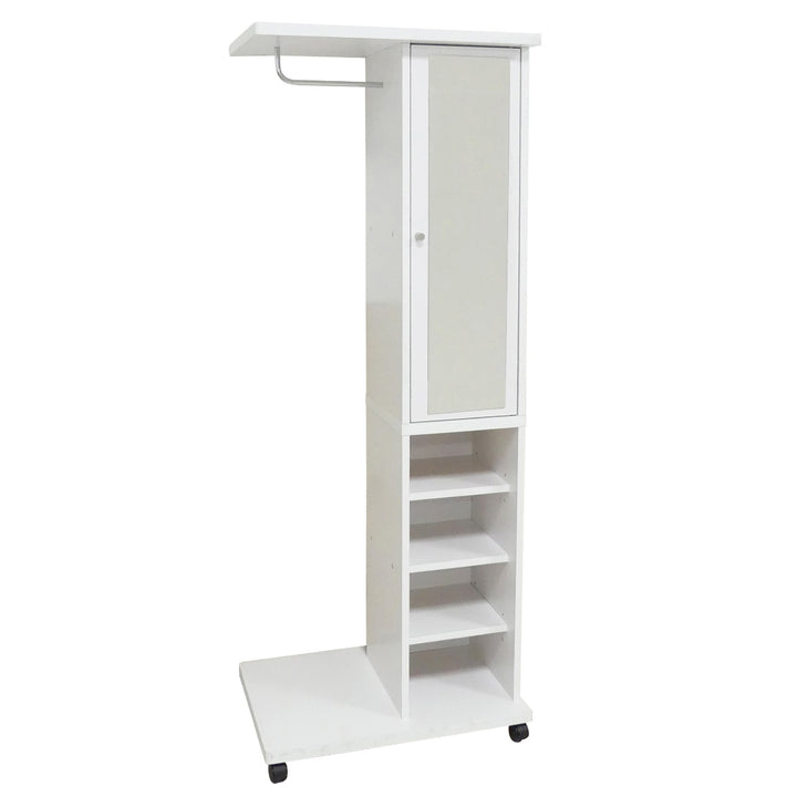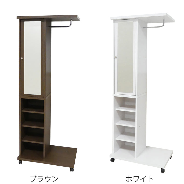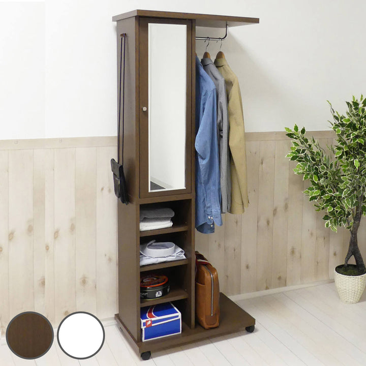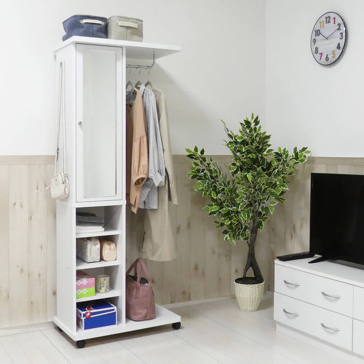 収納スペースが豊富なミラー付きハンガーラックです。ハンガーバーに加えて、扉付き収納に、オープンスペースもあり、これ一つで身の回りの物を綺麗に整頓できます。リビングや寝室はもちろん、玄関に置いて、帰宅時すぐに上着を掛けることができるので便利です。
