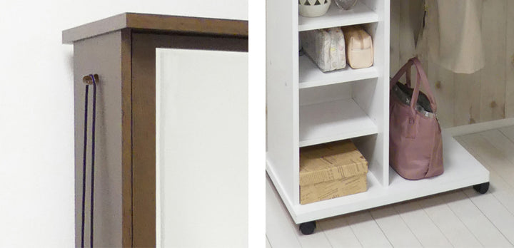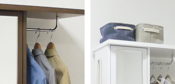 ●組み立ての際、収納部分とハンガー部分をお好みで左右逆にできます。