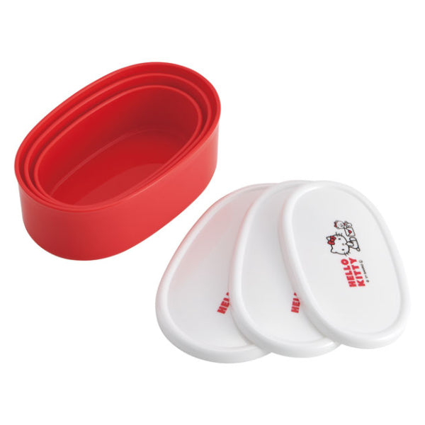 3サイズが1セットになった、ランチボックスです。抗菌加工が施されているのでお子様も安心です。大サイズが約400ml、中サイズが約280ml、小サイズが約180mlです。ご飯、おかず、デザートなどメニューによって容器を使い分けることができます。お弁当箱としてだけではなく、保存容器としてもお使いいただけます。
