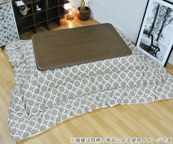 表と裏を縫い合わせて膨らみをもたせるキルティング加工を施したこたつ布団です。中綿の偏りを防ぐだけでなく、暖気を逃さずふっくらあったかい仕上がりになっています。
