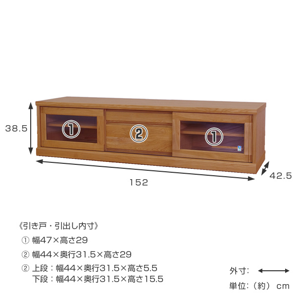 | サイズ | 約 幅152×奥行42.5×高さ38.5(cm) |