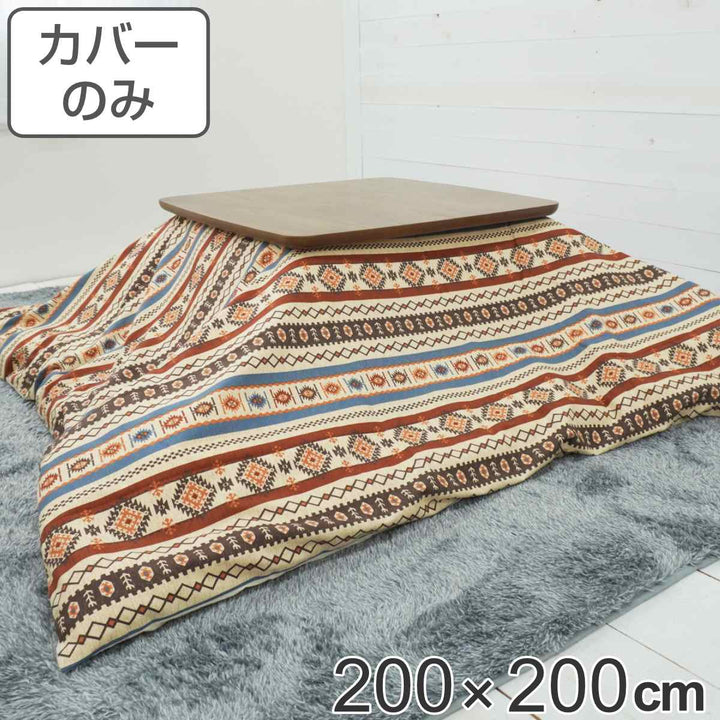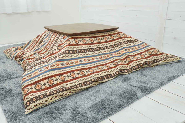 存在感抜群でインテリアに映えるキリム調ラパス柄のこたつ布団です。キリムとは遊牧民が家族の幸せを願う気持ちを込めた模様で、その色づかいからも優しいぬくもりが感じられるデザインです。