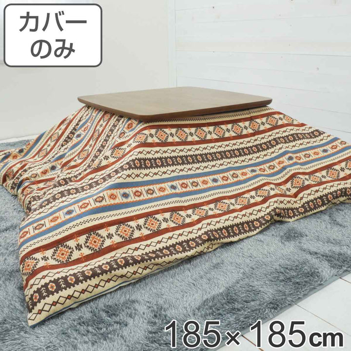 存在感抜群でインテリアに映えるキリム調ラパス柄のこたつ布団です。キリムとは遊牧民が家族の幸せを願う気持ちを込めた模様で、その色づかいからも優しいぬくもりが感じられるデザインです。