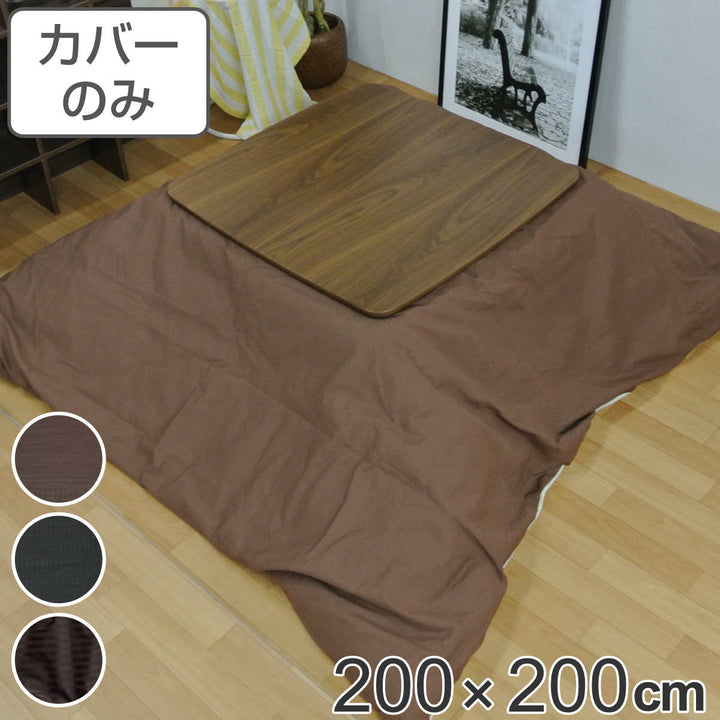 200×200cmの正方形タイプの日本製こたつ布団カバーです。素材にこだわっており、表生地はポリエステル100%、裏生地は綿100%仕様です。肌触りが良く、冬場に困りがちな静電気が発生しにくいため快適にお過ごしいただけます。