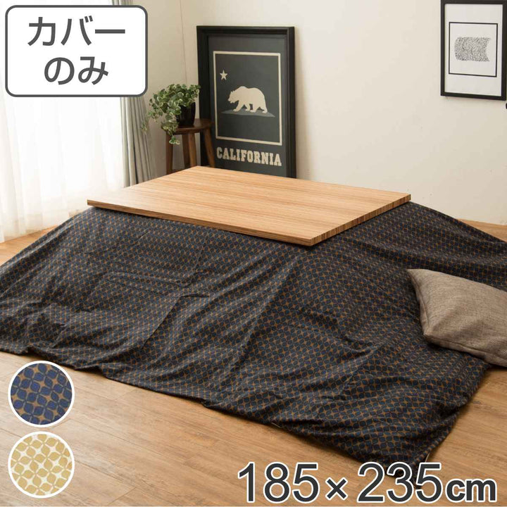 185×235cmの長方形タイプの日本製こたつ布団カバーです。素材にこだわっており、表生地・裏生地ともに綿100%仕様なので肌触りが良く、冬場に困りがちな静電気が発生しにくいため快適にお過ごしいただけます。