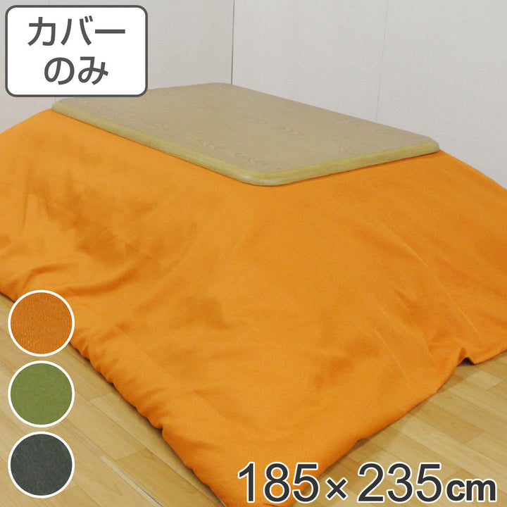 185×235cmの長方形タイプの日本製こたつ布団カバーです。素材にこだわっており、表生地は撥水加工を施したポリエステル100%、裏生地は綿100%仕様です。肌触りが良く、冬場に困りがちな静電気が発生しにくいため快適にお過ごしいただけます。