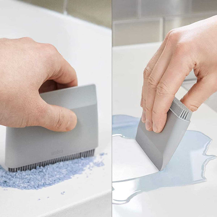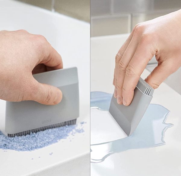 キッチンのシンクや調理台で活躍するコンパクトなスクイージーです。水分や汚れをサッとふき取ることができます。片側はシリコン製のブラシになっているのでシンクや蛇口の周りの汚れを擦ることもできます。