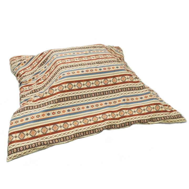 存在感抜群でインテリアに映えるキリム調ラパス柄のこたつ布団です。キリムとは遊牧民が家族の幸せを願う気持ちを込めた模様で、その色づかいからも優しいぬくもりが感じられるデザインです。