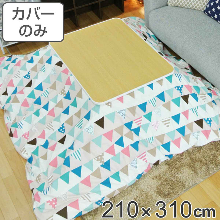 210×310cmの長方形タイプの日本製こたつ布団カバーです。素材にこだわっており、表生地・裏生地ともに綿100%仕様なので肌触りが良く、冬場に困りがちな静電気が発生しにくいため快適にお過ごしいただけます。