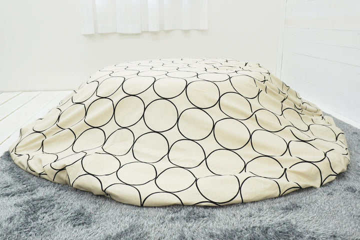 直径230cmの円形布団に付けてお使いいただけます。インテリアや気分に合わせて気軽に付け替えができ、カバーは洗濯可能なのでいつでも清潔を保つことができます。