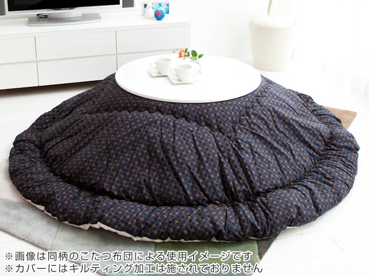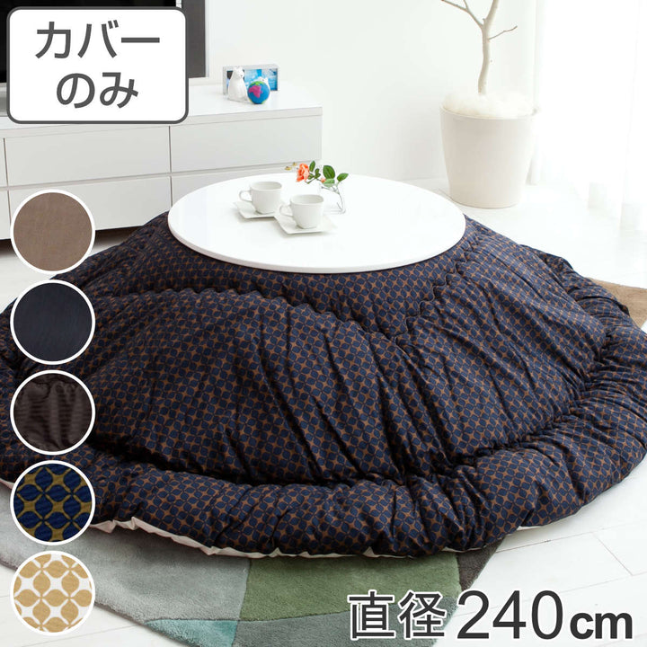 直径240cmの円形タイプの日本製こたつ布団カバーです。素材にこだわっており、表生地・裏生地ともに綿100%仕様なので肌触りが良く、冬場に困りがちな静電気が発生しにくいため快適にお過ごしいただけます。