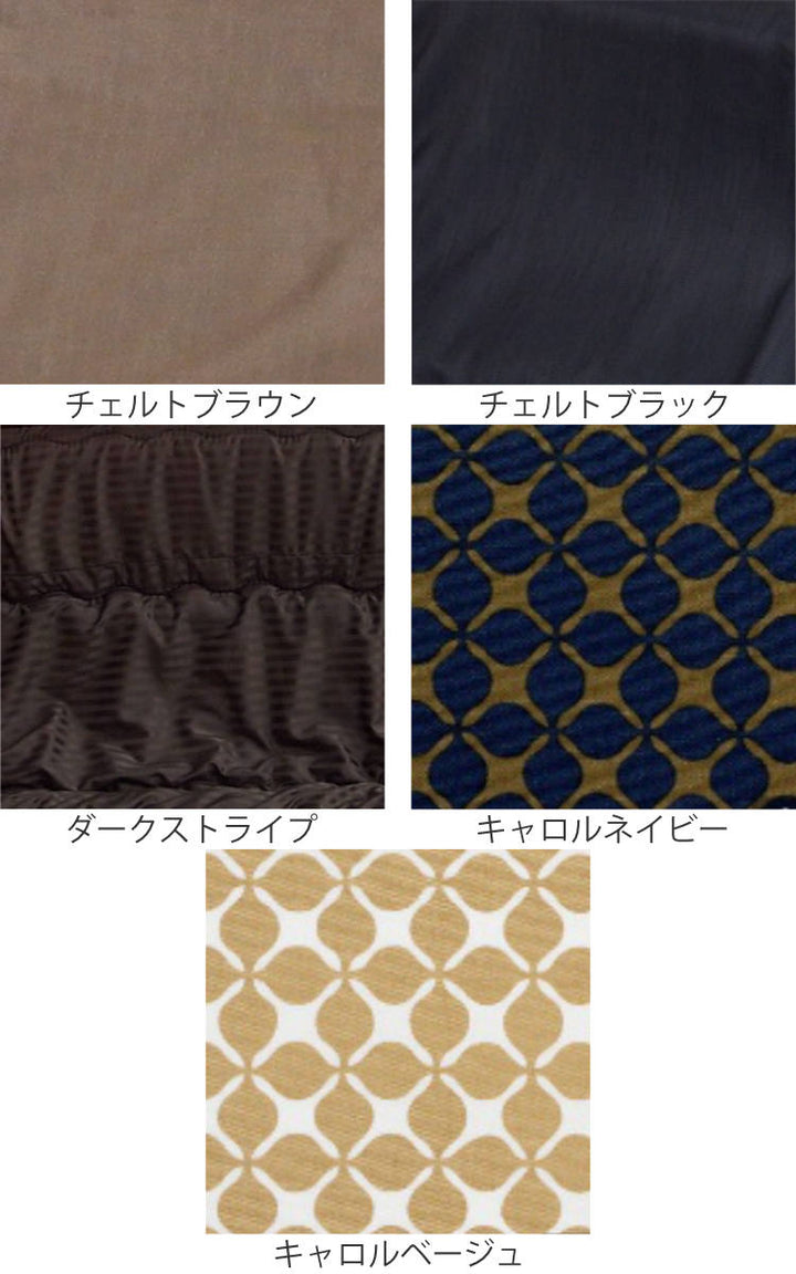 | 種類 | チェルトブラウン、チェルトブラック、ダークストライプ、キャロルネイビー、キャロルベージュ |