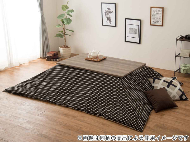 表と裏を縫い合わせて膨らみをもたせるキルティング加工を施したこたつ布団です。中綿の偏りを防ぐだけでなく、暖気を逃さずふっくらあったかい仕上がりになっています。