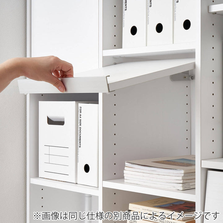 棚板は全て可動式です。自由自在に調節することができるので、背の高い物の収納にも最適です。位置が決められた固定棚がないので、効率の良い収納が実現します。